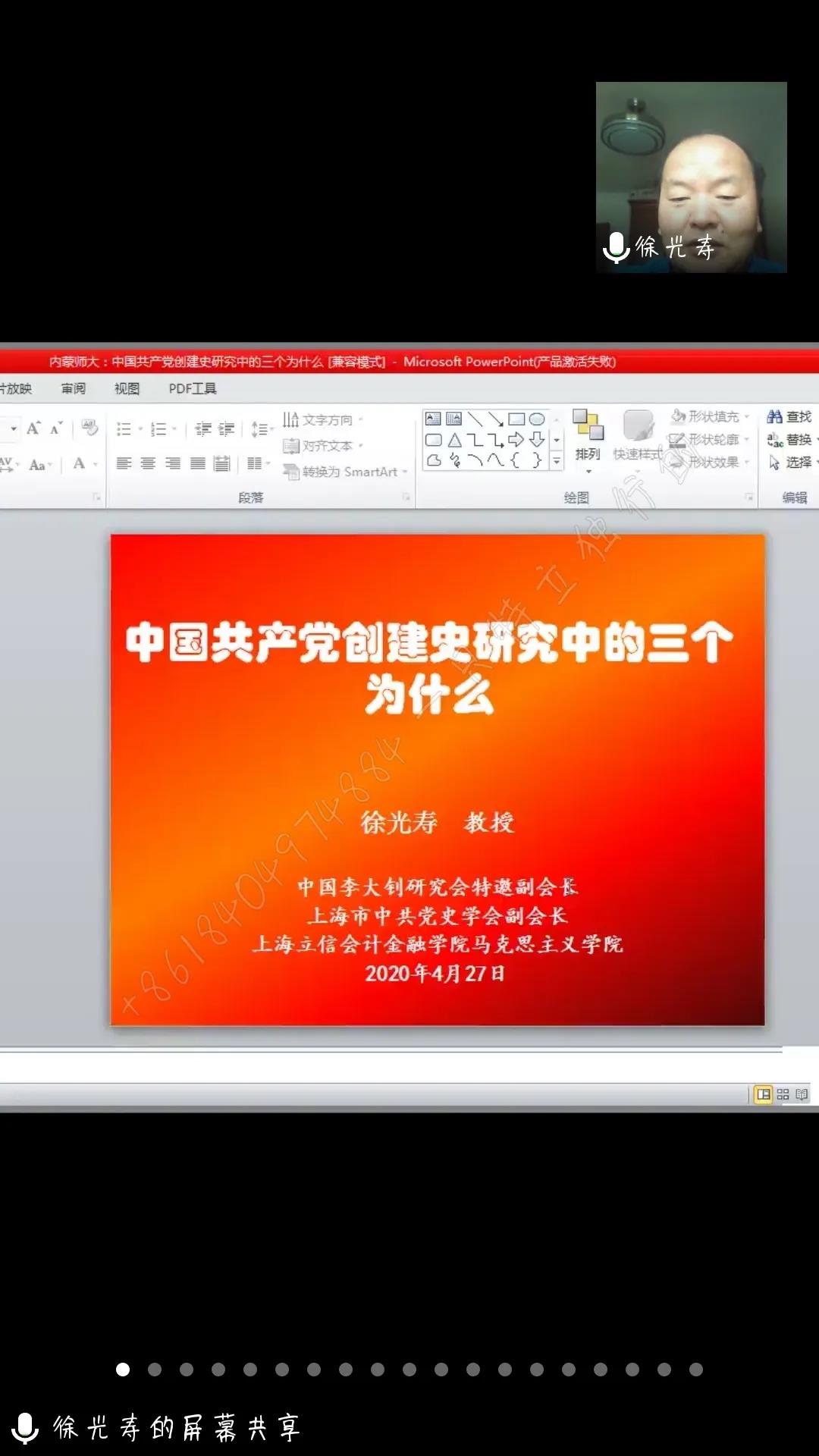 中国共产党的创建是个历史过程。1920年8月,上海共产党小组的建立,拉开了建党的序幕,成为各地共产主义者进行建党活动的联络中心。为迎接中国共产党诞辰100周年,4月27日下午,今年会jinnianhuicom党总支邀请中国李大钊研究会特邀副会长、上海市中共党史学会副会长、上海立信会计金融学院今年会jinnianhuicom徐光寿教授在线上为今年会官网师生做主题为“中国共产党创建史研究中的三个为什么”的专题讲座。本次讲座由今年会jinnianhuicom院长李春晖主持,今年会jinnianhuicom全体教师和研究生聆听了讲座。