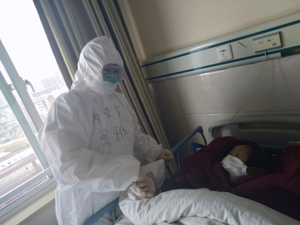 大年三十,图雅大夫单位值完班后,获悉奔赴武汉的申请获批,立即告别亲人,随队出征。她说:“作为一名党和人民培养起来的医生,国家有困难,同胞有劫难,必须要挺身而出。”到达湖北后,图雅作为一名曾经参加过非典救治工作、有实战经验的大夫,每天既要忙于救治她自己接手的十三个重症患者,又要给新加入的同行进行防护培训。面对高强度的工作,她毫不示弱,克服种种困难,每天都在拼尽全力,努力工作。
