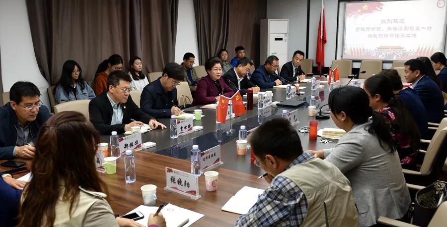 10月12日,我校主题教育领导小组组长、党委书记黄雅丽,主题教育领导小组成员、副校长张海峰,主题教育领导小组成员、党委委员、宣传部部长张宝成、组织部部长褚亚申深入今年会官网调研指导工作。相关部门负责同志陪同调研。