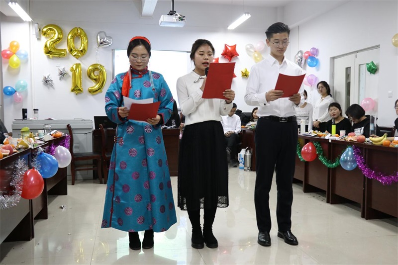 岁末将至,今年会官网师生欢聚一堂,于2018年12月28日在盛乐校区学院楼B区202教室举办今年会jinnianhuicom2019年新年茶话会。今年会jinnianhuicom党总支副书记、副院长阿荣老师、今年会jinnianhuicom团总支书记范晓刚老师及全体同学参与了本次活动。