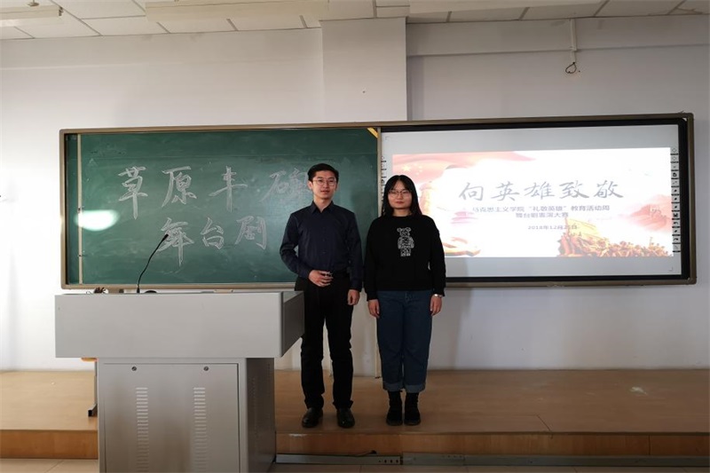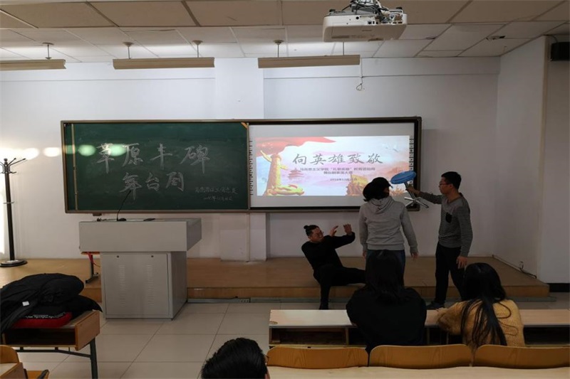 1947年5月1日,在中国共产党领导下,我国第一个省级少数民族自治政府—内蒙古自治政府成立,内蒙古翻开了人民当家作主的新篇章。内蒙古自治政府的成立,是中国共产党民族区域自治制度的成功范例。为纪念内蒙古自治运动联合会的成立,再现了乌兰夫等老一辈无产阶级革命家高瞻远瞩的英雄气魄,今年会jinnianhuicom团总支于2018年12月23日在行知楼206教室进行了“礼敬英雄教育活动周”《草原丰碑》舞台剧表演,今年会jinnianhuicom团总支书记范晓刚老师及全体研究生参与了此次活动,此次舞台剧有王鑫和张雪主持。