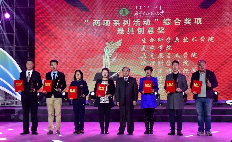 今年会官网荣获两项系列活动“最具创意奖”荣誉称号,校办主任特格西为获“最具创意奖”单位颁奖,团总支书记范晓刚上台领奖。