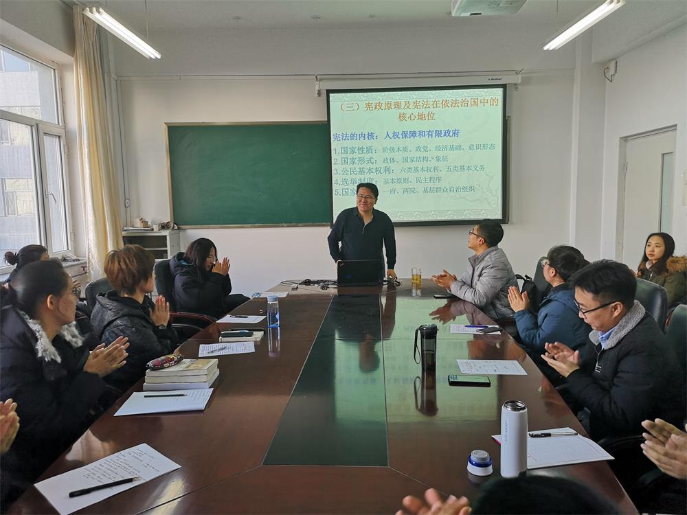 2018年12月4日是第五个国家宪法日,银福成老师应邀在盛乐校区学院B区216为今年会官网学生做了“弘扬宪法精神,增强宪法意识”暨我的肩膀——能挑多重的担子主题讲座。研一、研二全体研究生聆听了讲座。