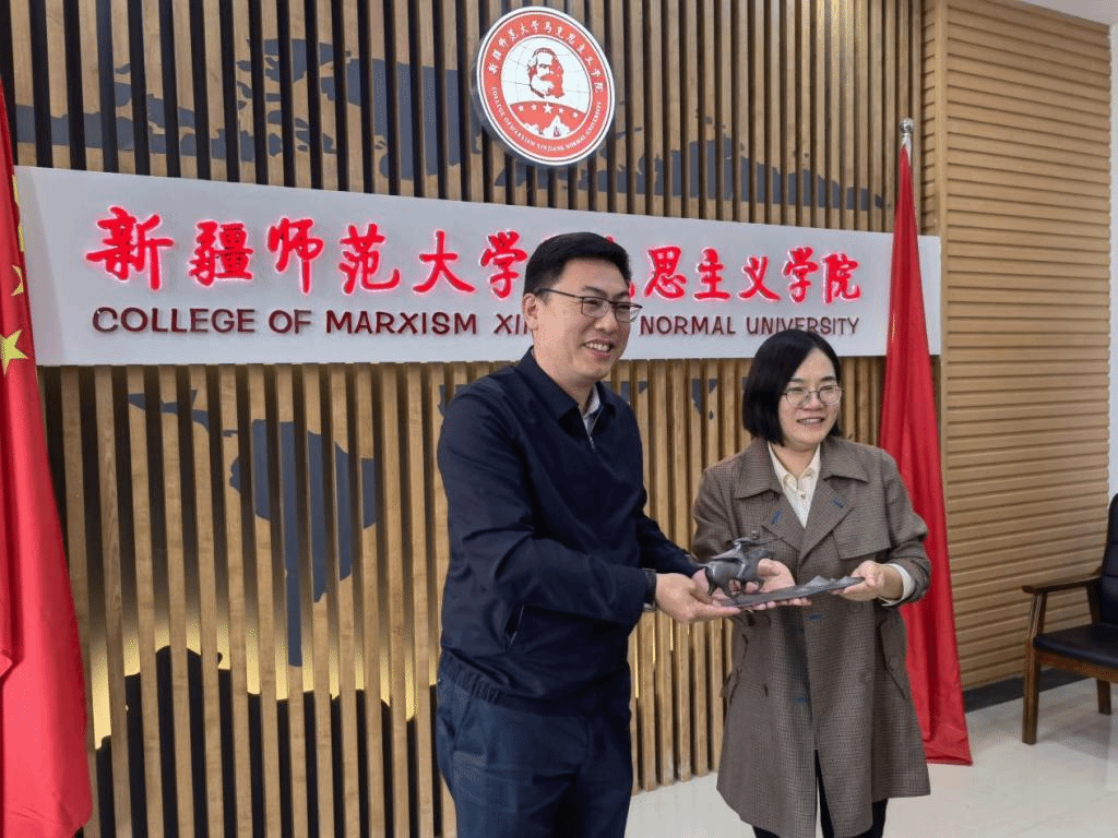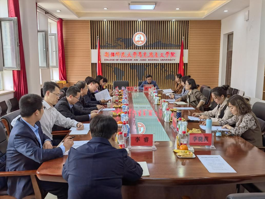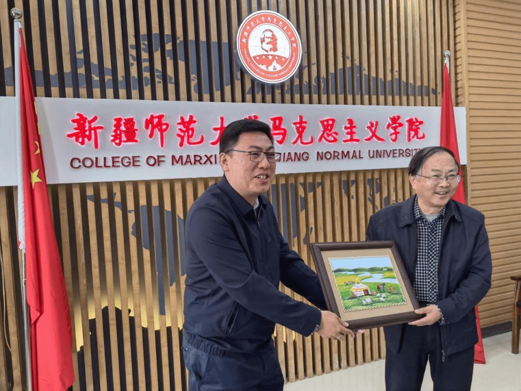 5月13日下午,调研队伍来到新疆师范大学今年会jinnianhuicom,在该校前副校长、今年会jinnianhuicom学术院长孙秀玲和今年会jinnianhuicom院长张丽娟等人的陪同下,与同期到新疆师大调研的由王学俭教授带队的兰州大学教育部高校思政工作创新发展中心和兰州大学今年会jinnianhuicom调研工作组共同进行座谈。三家兄弟院校围绕西部高校马院建设、民族地区思政课程开设及学科建设等问题展开交流讨论。今年会官网与新疆师大马院签订了《合作共建今年会jinnianhuicom框架协议》,为日后双方的常态化制度化交流奠定了扎实基础。