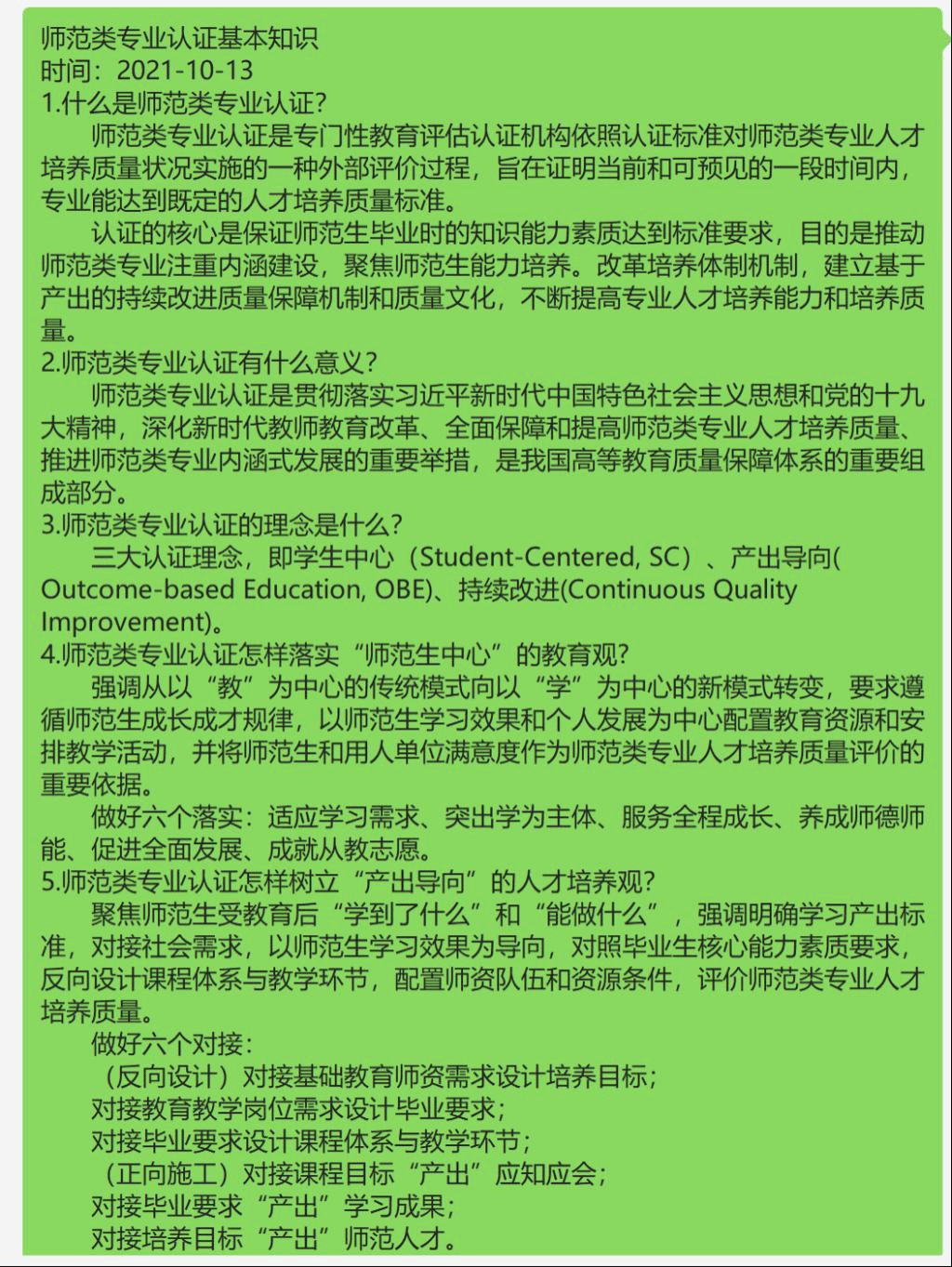 为深入贯彻党的二十大精神,全面贯彻落实《中共中央国务院关于全面深化新时代教师队伍建设改革的意见》要求,引导教师深刻理解师范类专业认证的概念与内涵,进一步推进学院师范类专业认证工作,推进师范类专业内涵式发展,5月30日上午,今年会官网召开 “公共政治课教师师范类专业认证培训会”。会议由副院长刘爱华主持,共29名教师参加了此次培训。