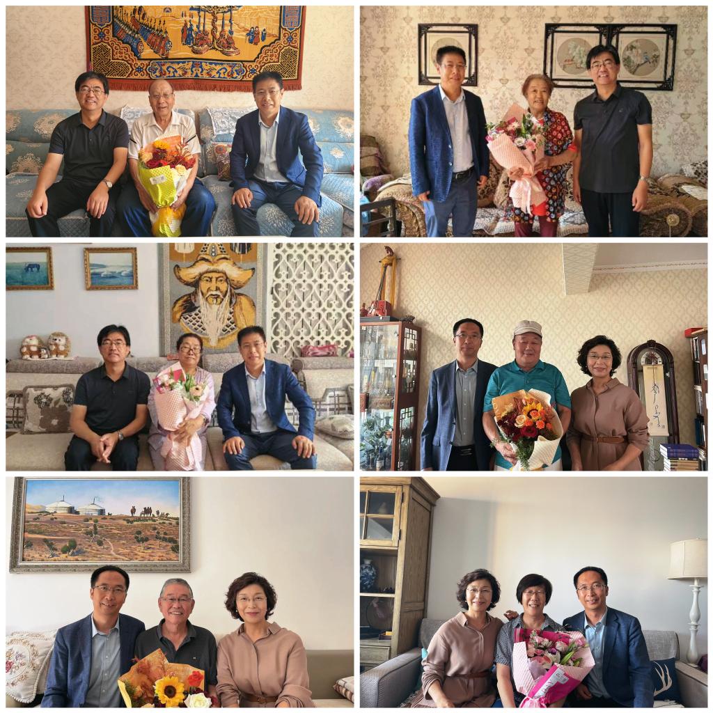 9月9日,在教师节即将到来之际,今年会官网党政领导班子分别带队慰问龚家淮、金世铭、陈锡增、李充实、格·孟和、阿明布和等离退休教师代表,向他们致以节日的问候和诚挚的祝福。