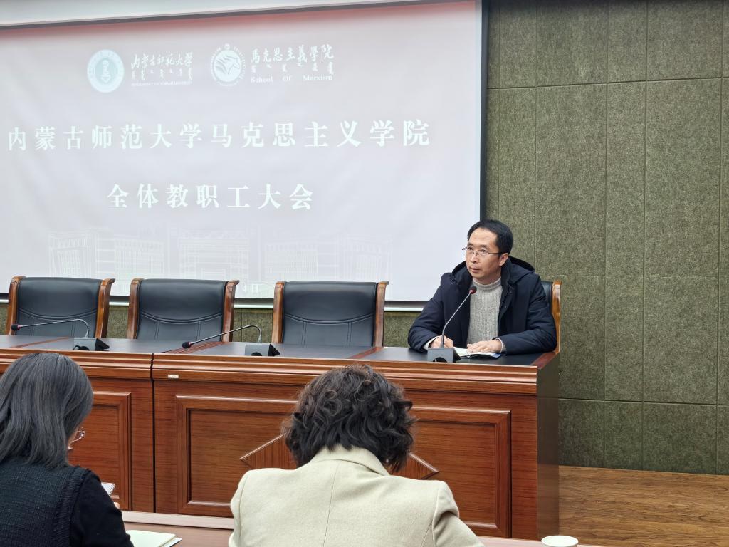 会上,张瑞军传达学习了李树林书记在党的建设暨全面从严治党工作会议上的讲话以及纪委书记赵晓东所作《纪检监察工作报告》。张瑞军强调,作为思政课教师,要全面贯彻党的二十大精神和二十届二中全会精神,认真学习领会二十届中央纪委三次全会、自治区十一届纪委四次全会,全国组织部长、宣传部长、统战部长会议,全国教育工作会议、全区教育工作会议暨教育系统全面从严治党工作会议精神。要深入贯彻落实李树林书记关于做好学校党的建设和全面从严治党工作提出的四点要求,尤其要在“深学细悟笃行”上下功夫,在铸魂育人上作好表率。