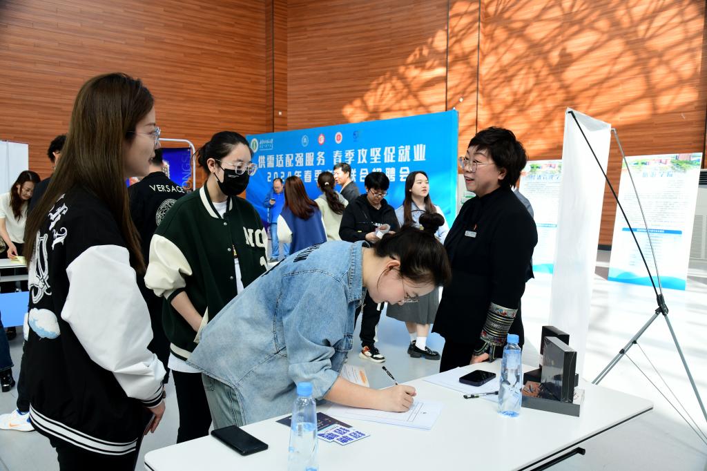 本次招聘会共有55家用人单位参加,提供法学、思想政治教育、经济学等相关专业500余个岗位,近1500名学生到场。截至招聘会结束,现场投递简历1000余份。