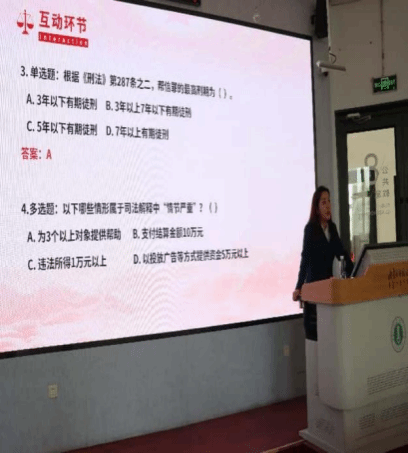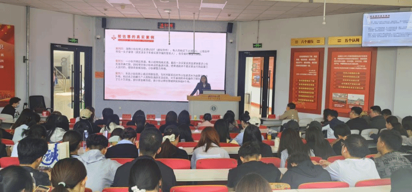 在完成了校地合作签约仪式及授牌仪式后,赛罕区司法局还精心安排了一场以 “青春与法同行” 为主题的普法讲座。讲座聚焦反电信网络诈骗法和刑法中的帮信罪。主讲人结合实际案例,深入浅出地为同学们剖析了帮信罪的构成要件、常见形式及严重后果,详细讲解了如何防范电信网络诈骗,引导同学们增强法律意识,树立正确的价值观。讲座过程中还设置了法律知识有奖竞答环节,同学们积极参与互动,现场气氛活跃,在轻松愉快的氛围中提升了法律素养。