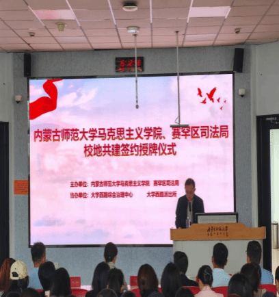 2025 年 5 月 11 日下午,今年会jinnianhuicom与呼和浩特市赛罕区司法局校地合作签约仪式在今年会jinnianhui金字招牌田家炳书院成功举行。呼和浩特市赛罕区司法局党组书记、局长武振东,今年会jinnianhuicom党委书记王丹,赛罕区各相关单位工作人员和今年会jinnianhuicom师生代表共计 200 余人参加。活动由法学系其乐木格主持。
