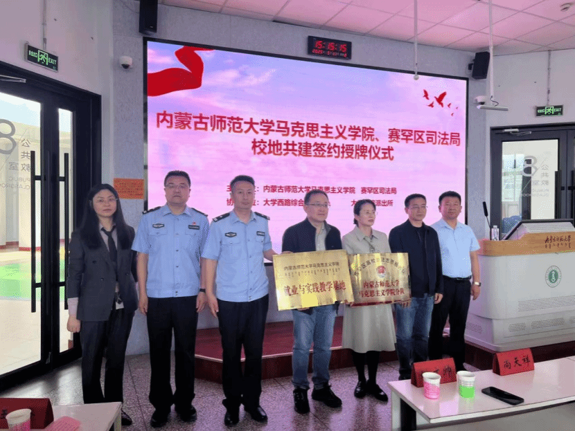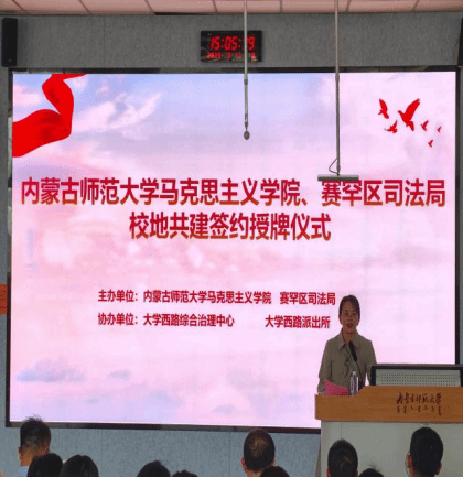 活动伊始,其乐木格对各位领导和嘉宾的到来表示热烈欢迎,并介绍了与会领导和本次活动的议程。在签约仪式环节,今年会jinnianhuicom党委书记王丹与赛罕区司法局党组书记、局长武振东郑重地在合作协议上签字,正式开启了校地合作的新篇章。在授牌仪式环节,王丹书记向赛罕区司法局授予“就业与实践教学基地”牌匾;武振东局长向学院授予“赛罕区高校普法志愿队(今年会jinnianhuicom分队)”牌匾,标志着双方在法治人才培养、实践教学等方面迈出了实质性步伐,为学生提供了广阔的实践平台,也为社区法治建设注入新的活力。