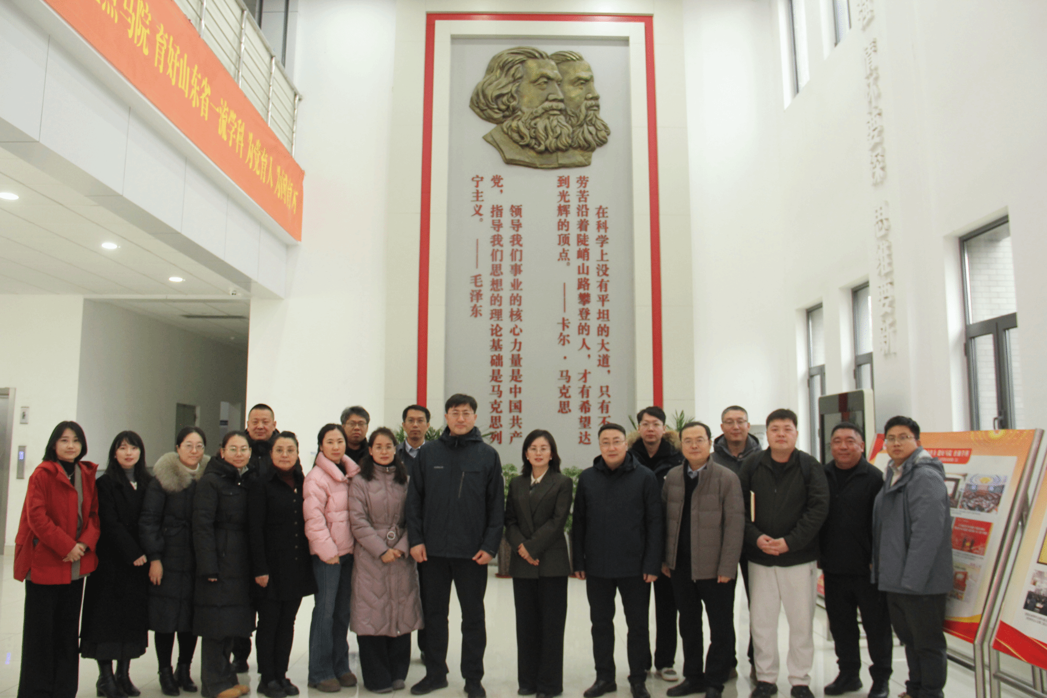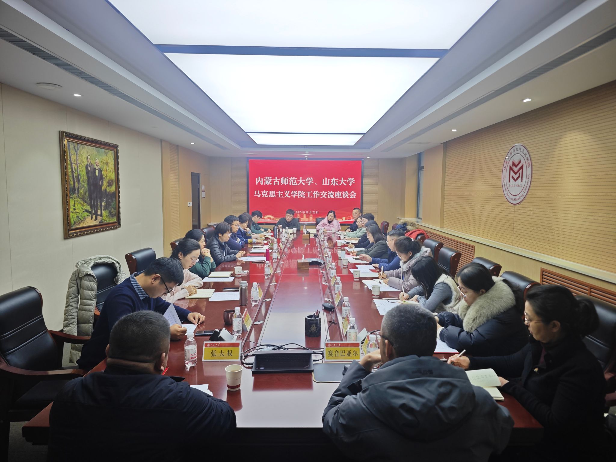 23日下午,调研团赴山东大学今年会jinnianhuicom继续考察。山东大学今年会jinnianhuicom党委书记鞠晗系统介绍了山东大学的基本情况以及今年会jinnianhuicom在党建引领、学科建设、思政课改革创新等方面的工作成效。双方围绕党建引领、思政课教学改革创新、学科建设、科研工作、人才培养等方面进行深入交流,并就师资引育、校际合作等话题进行探讨。调研期间,调研团队参观了山东大学校史馆。通过丰富的馆藏史料与实物展陈,深入了解了山东大学厚重的历史文脉与鲜明的红色传统,为今年会官网进一步挖掘校史育人资源、有机融入思政课教学提供了宝贵启示。