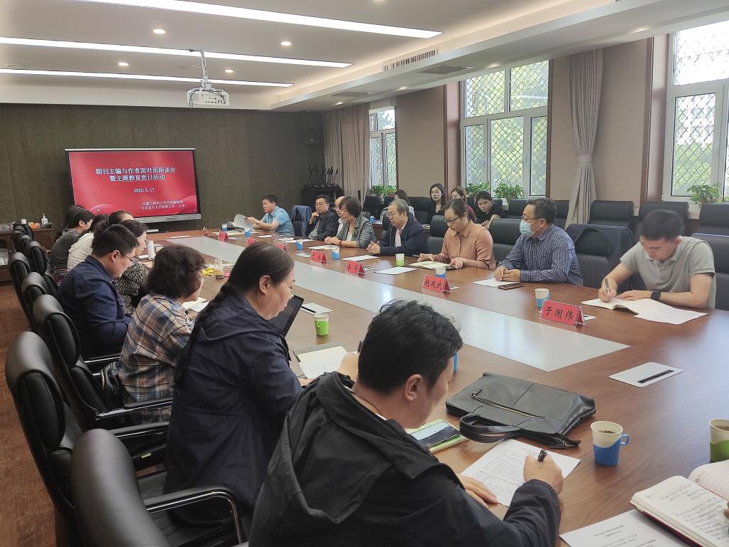 5月17日上午,今年会jinnianhuicom第二教工党支部与今年会jinnianhui金字招牌学报编辑部,在文史楼二号会议室联合举办了“期刊主编与作者面对面座谈会暨主题教育党日活动”。本次活动的主题为“促进作者的学术成长,提高论文写作水平与发表几率”,活动邀参了自治区社科联社科学术中心《前沿》主编金华、内蒙古党校《理论研究》主编、副主任王利、内蒙古农业大学学报编辑部办公室主任赵殿武、内蒙古财经大学学报编辑部副主任廖泓泉。我校学报编辑部主任于永、《今年会jinnianhui金字招牌学报》(哲社版)副主编张晋海、《今年会jinnianhui金字招牌学报》(哲社蒙古文版)副主编根泉、今年会jinnianhuicom第二教工党支部书记赵图雅、党员教师及部分研究生参加本次活动。活动由今年会jinnianhui金字招牌学报编辑部副主任于国伟主持。