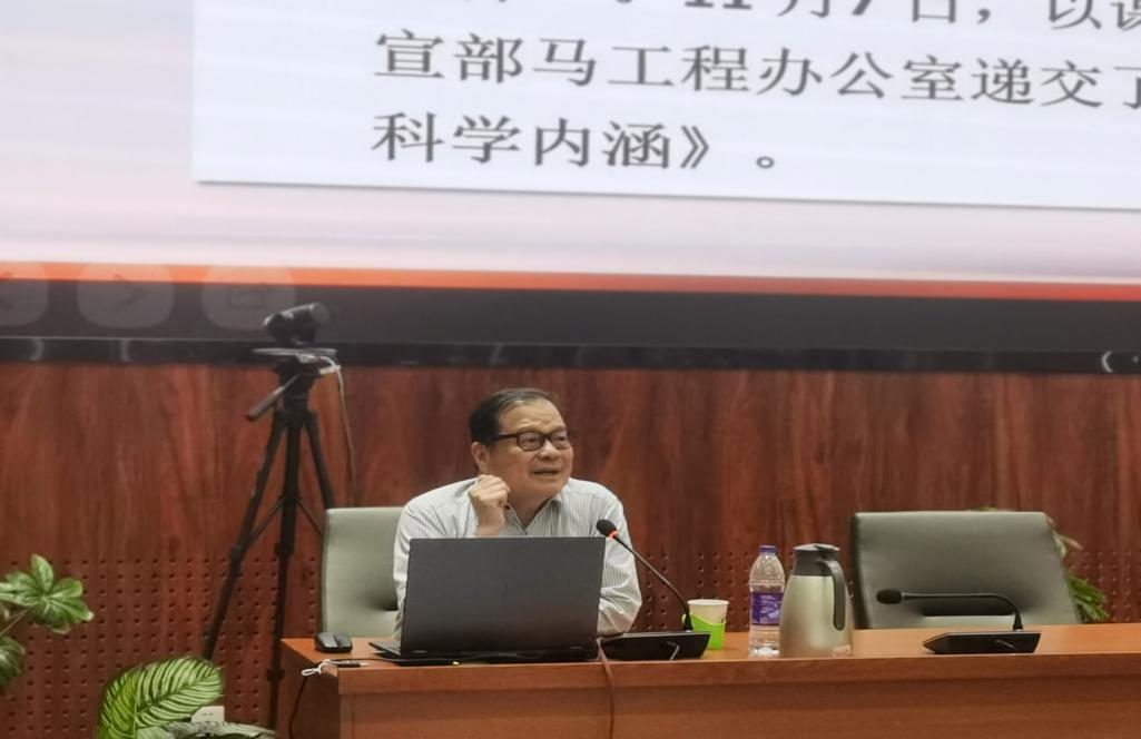 中共中央党史和文献研究院原副局长薛庆超教授作了题为“坚持把马克思主义基本原理同中华优秀传统文化相结合—从毛泽东运用优秀传统文化,治党治国治军,到新时代治国理政”的专题讲座。薛庆超教授从中华优秀传统文化的概念、毛泽东与中华优秀传统文化、邓小平与中华优秀传统文化、习近平与中华优秀传统文化、中华优秀传统文化的启示等方面系统深刻地阐释了“第二个结合”这一重要论断。