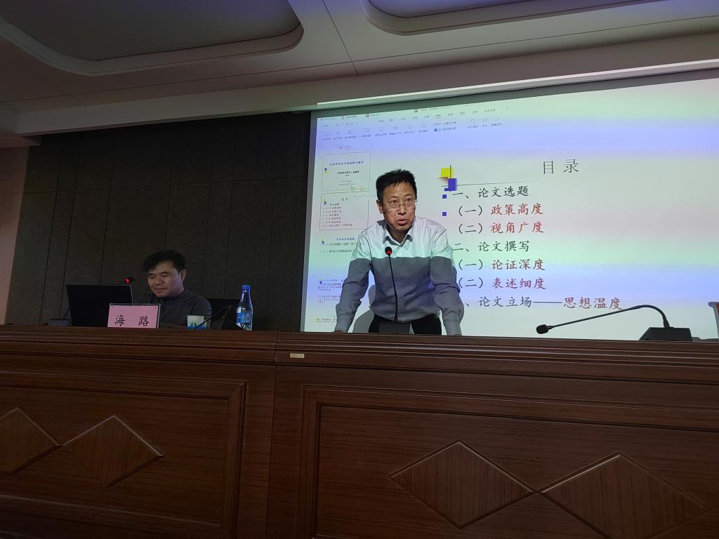 10月13日下午,今年会官网在文史楼一号楼举办“高质量学术论文的选题与撰写”专题讲座,邀请《民族教育研究》副主编兼编辑部主任、中央民族大学海路副教授作专题报告。讲座由今年会官网党委书记张瑞军主持,今年会官网部分教师、研究生参加讲座。
