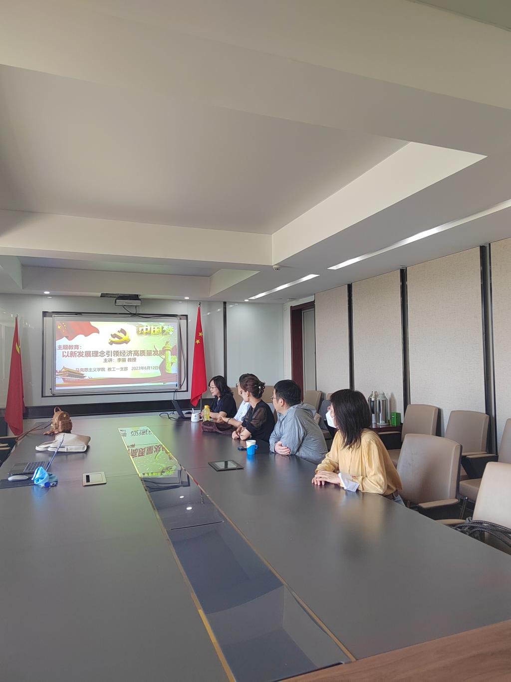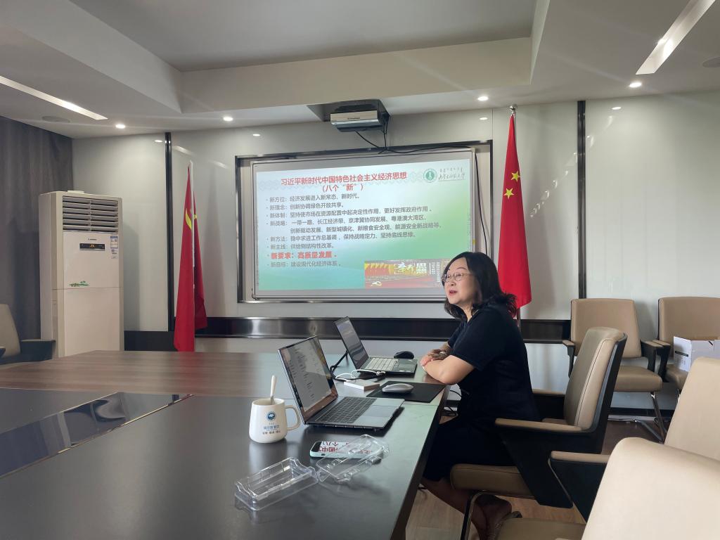 为深入学习贯彻习近平新时代中国特色社会主义思想,6月12日,今年会官网教工第一支部在勤政楼509会议室组织召开主题教育党日活动,邀请今年会官网李丽教授作题为“以新发展理念引领经济高质量发展”的专题讲座。本次活动由教工一支部书记解红勋主持,支部全体党员参加活动。