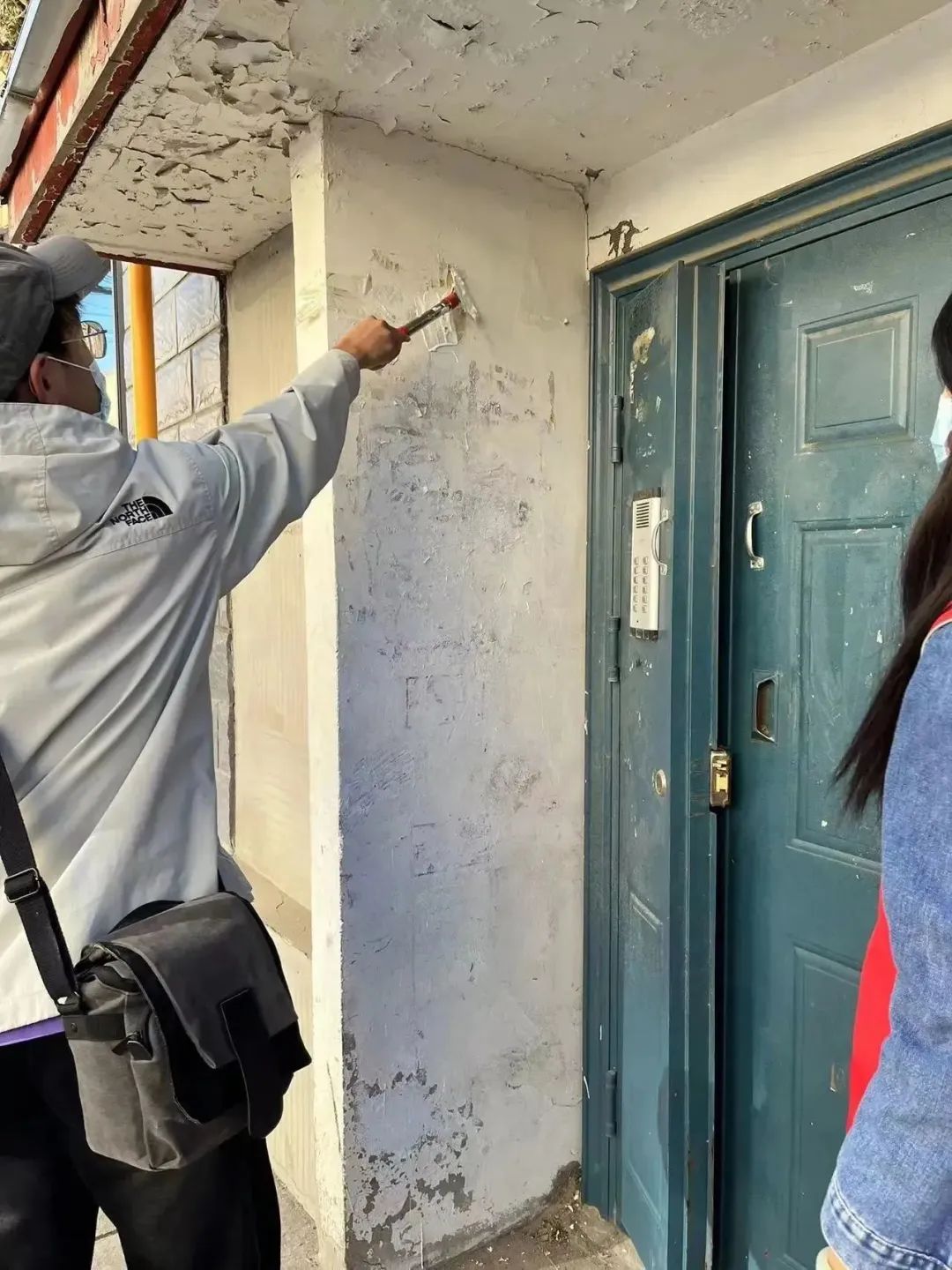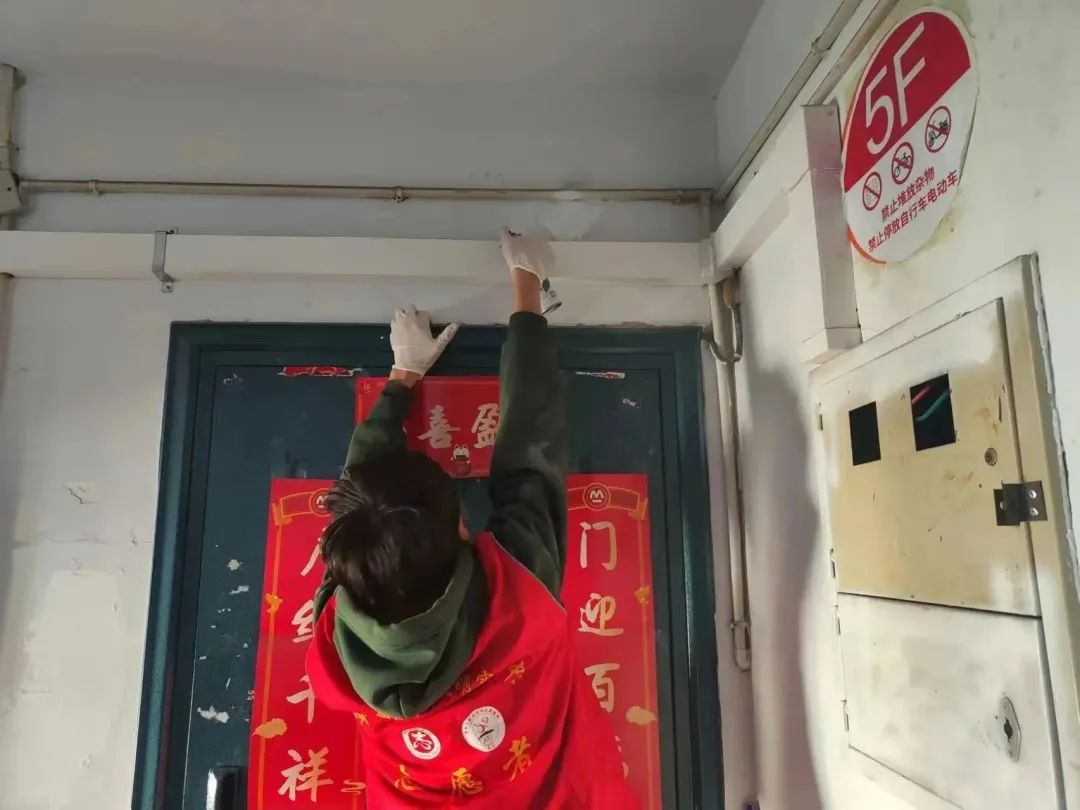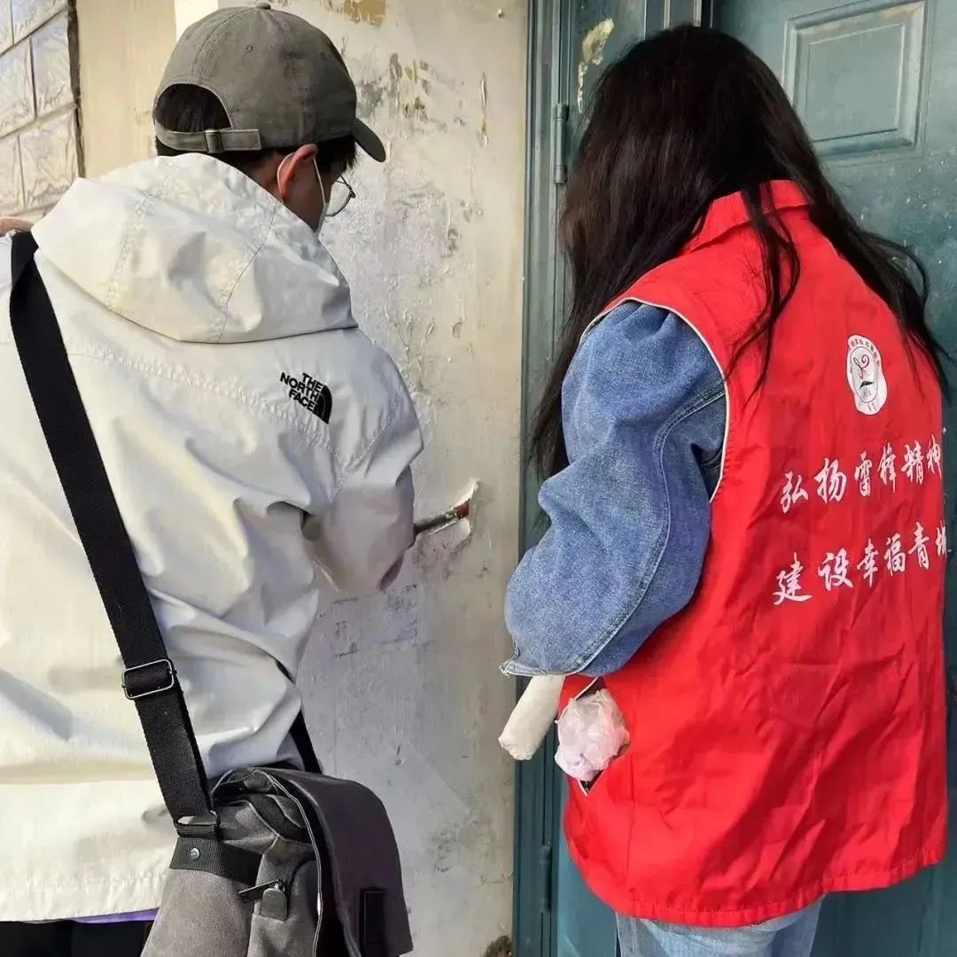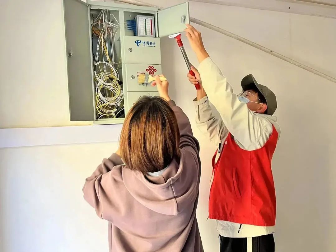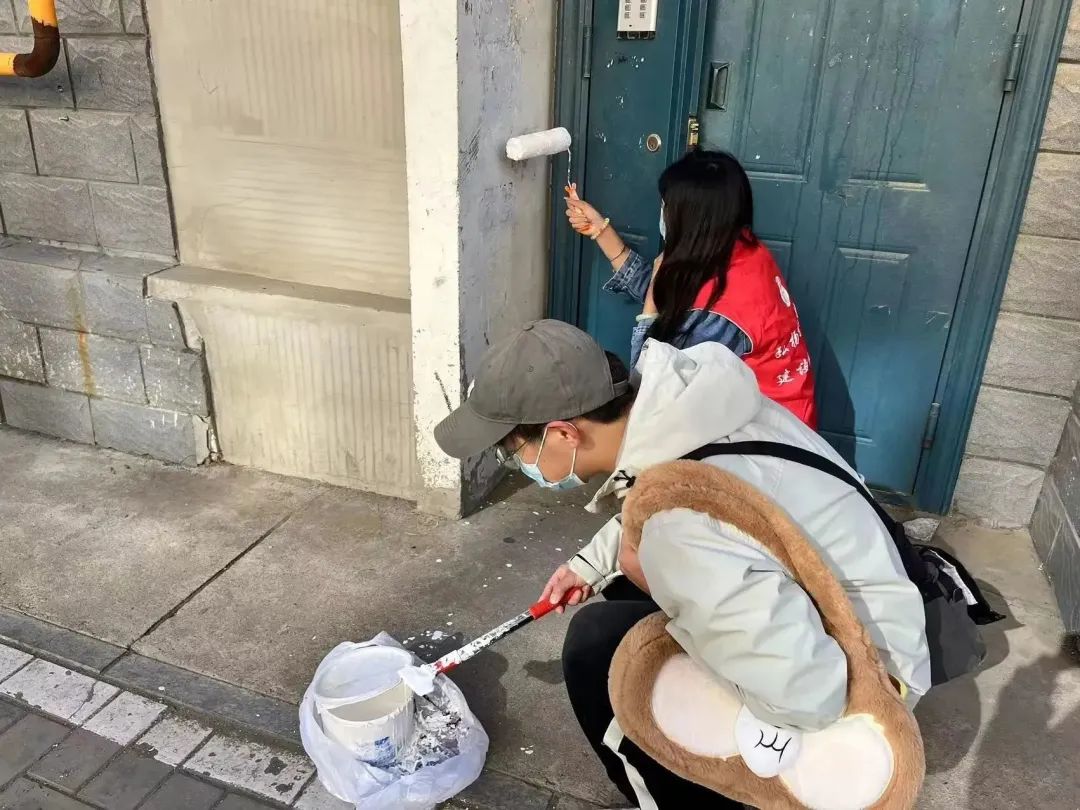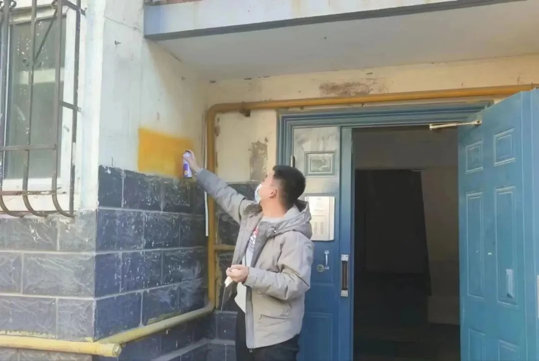那些顽固的、尤其是楼道里面用工具也不易清理掉的小广告就刷涂料来掩盖,志愿者们还踩着梯子,将单元门顶部长时间积沉的垃圾也全部清理干净。他们不怕累、不嫌脏,不顾落在身上的涂料和满身灰尘,只希望自己的清扫工作能服务到社区居民,为居民的幸福生活贡献一份自己的力量。