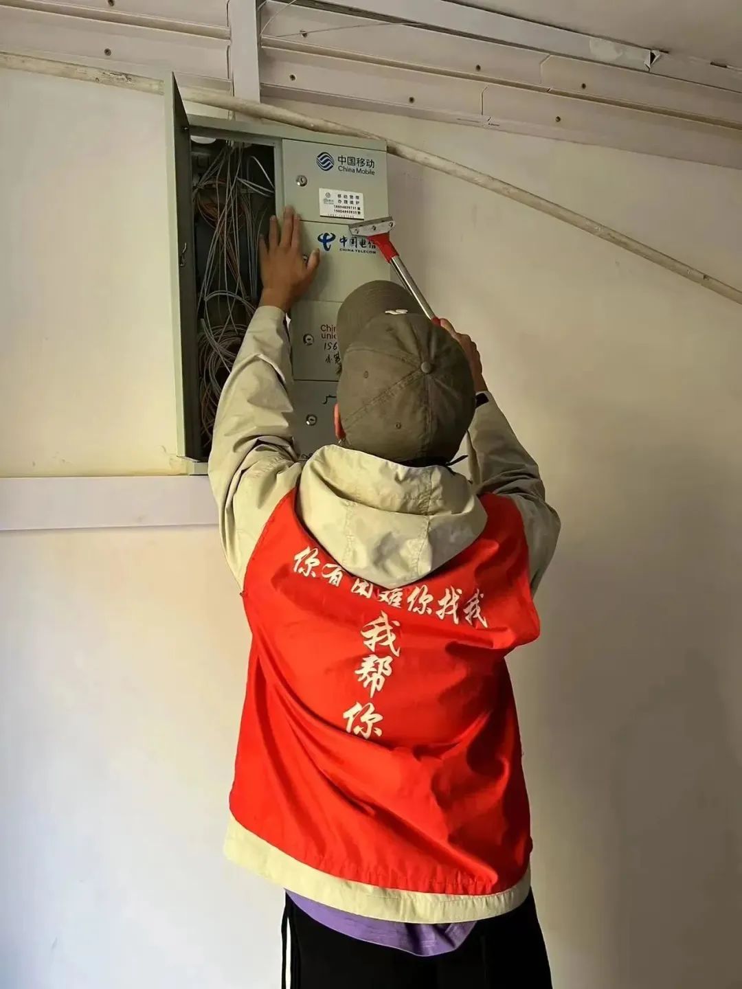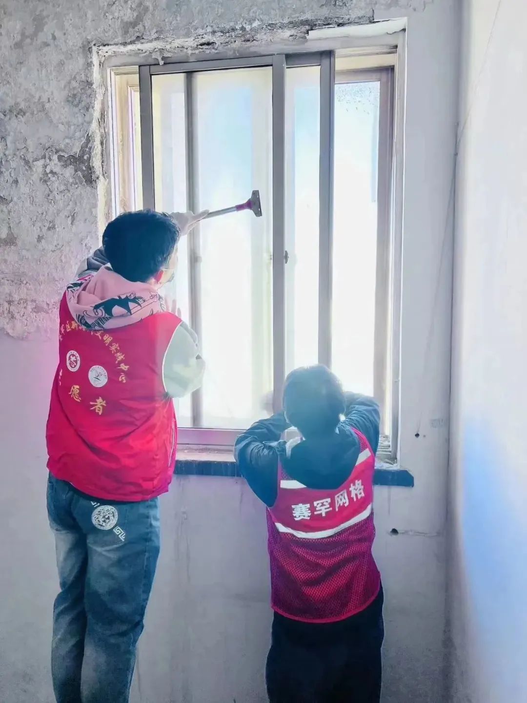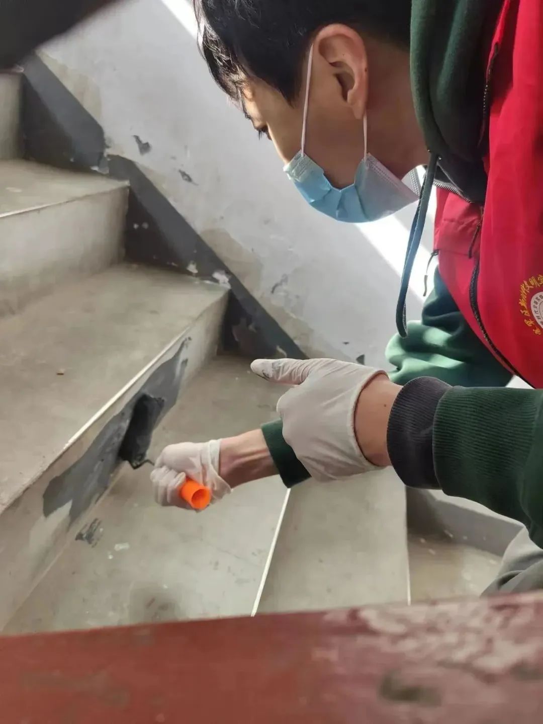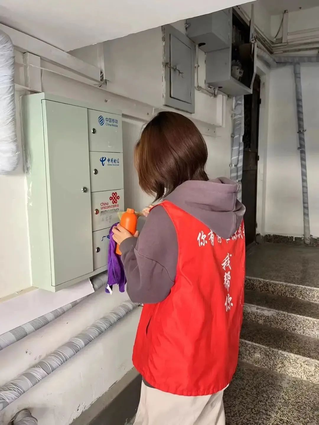 那些顽固的、尤其是楼道里面用工具也不易清理掉的小广告就刷涂料来掩盖,志愿者们还踩着梯子,将单元门顶部长时间积沉的垃圾也全部清理干净。他们不怕累、不嫌脏,不顾落在身上的涂料和满身灰尘,只希望自己的清扫工作能服务到社区居民,为居民的幸福生活贡献一份自己的力量。