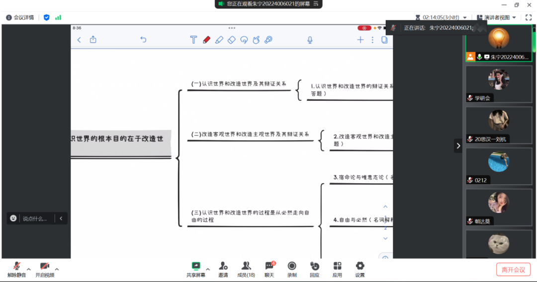 图为2022级马克思主义理论专业研究生朱宁正在为本科生们进行线上讲座。