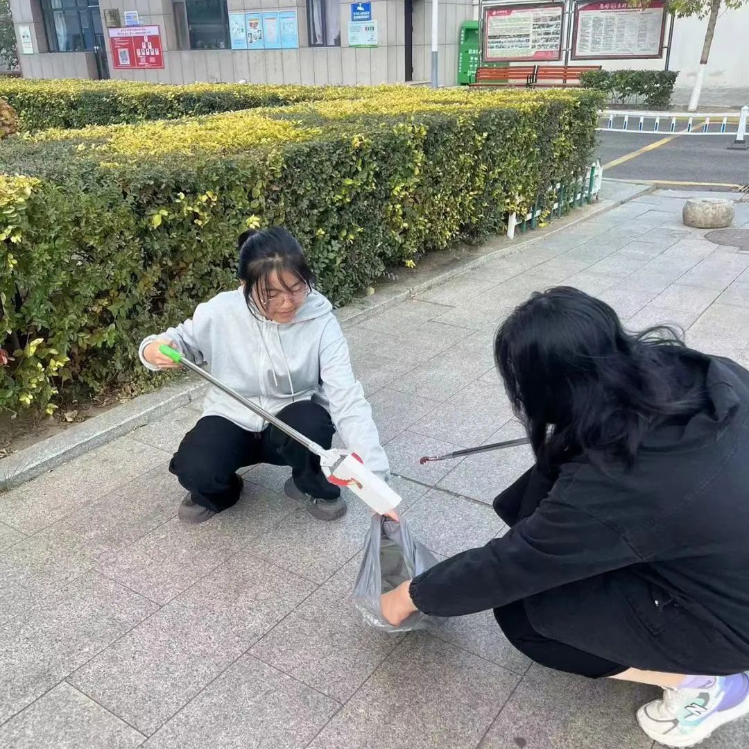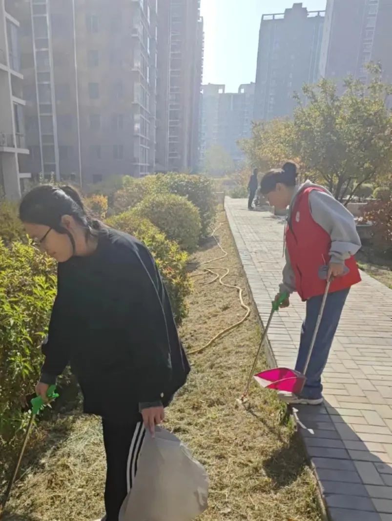 志愿者们用扫帚和垃圾袋,共同努力清理街道上的杂乱垃圾、烟蒂和纸屑,使赛罕区高院社区的环境质量得到进一步提升和改善。