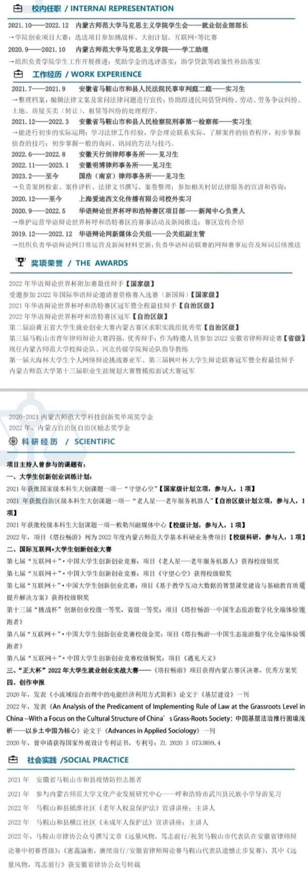 为贯彻《内蒙古自治区教育厅关于做好2023届全区普通高校毕业生就业创业工作的通知》(内教办便函〔2022〕144号)精神,进一步提升大学生职业素质和求职能力,普及简历制作基本理念,提高就业竞争力,第三届“位来杯”内蒙古自治区大学生视频简历大赛成功举办,今年会官网学子焦凤冉荣获“位来杯”校级优秀奖,童臻尧荣获“位来杯”校级二等奖及区级三等奖!