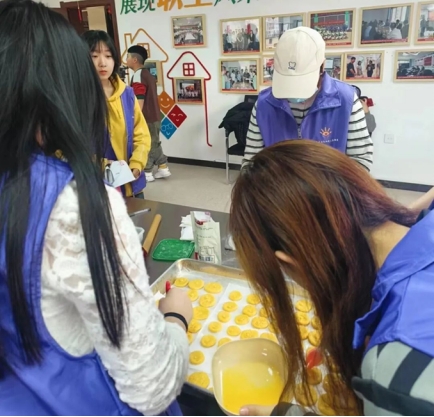 为更好地践行雷锋精神,22级思政三班同学携手三顺店社区,大力弘扬雷锋精神,服务特殊儿童,于3月15日在三顺店社区开展了“我是小小厨师长”公益项目。在老师的带领下,22级思政三班志愿者们来到了三顺店社区,他们互相商量分工,对特殊儿童进行烘焙课辅导。面对志愿者的到来,有些孩子们有一点点羞涩,但是志愿者们亲切友好的态度,耐心的帮助,温暖的话语让孩子们感受到了温暖与关怀,给了他们十足的安全感。孩子们也逐渐敞开心扉,同哥哥姐姐互相配合、互相帮助,在老师的指导下,用奶油、鸡蛋、白砂糖……完成了一个个精致、可爱的小甜品。这份小甜品温暖了每一个人的心,点燃了每一份爱。