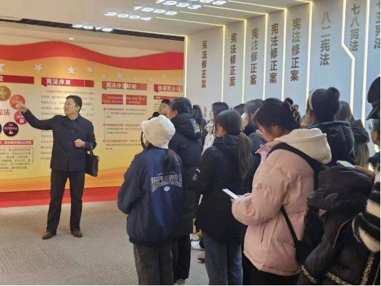 当日,法学专业的同学们来到呼和浩特赛罕区记录监察委员会进行宪法日实践活动。同学们通过展厅内陈列的宪法相关文献,在讲解员的娓娓道来中对宪法有了进一步的了解。参观后,同学们进入宣誓厅,大家由金阿拉坦苏和老师带领全体同学进行了庄严的宪法宣誓,进一步感悟宪法精神。