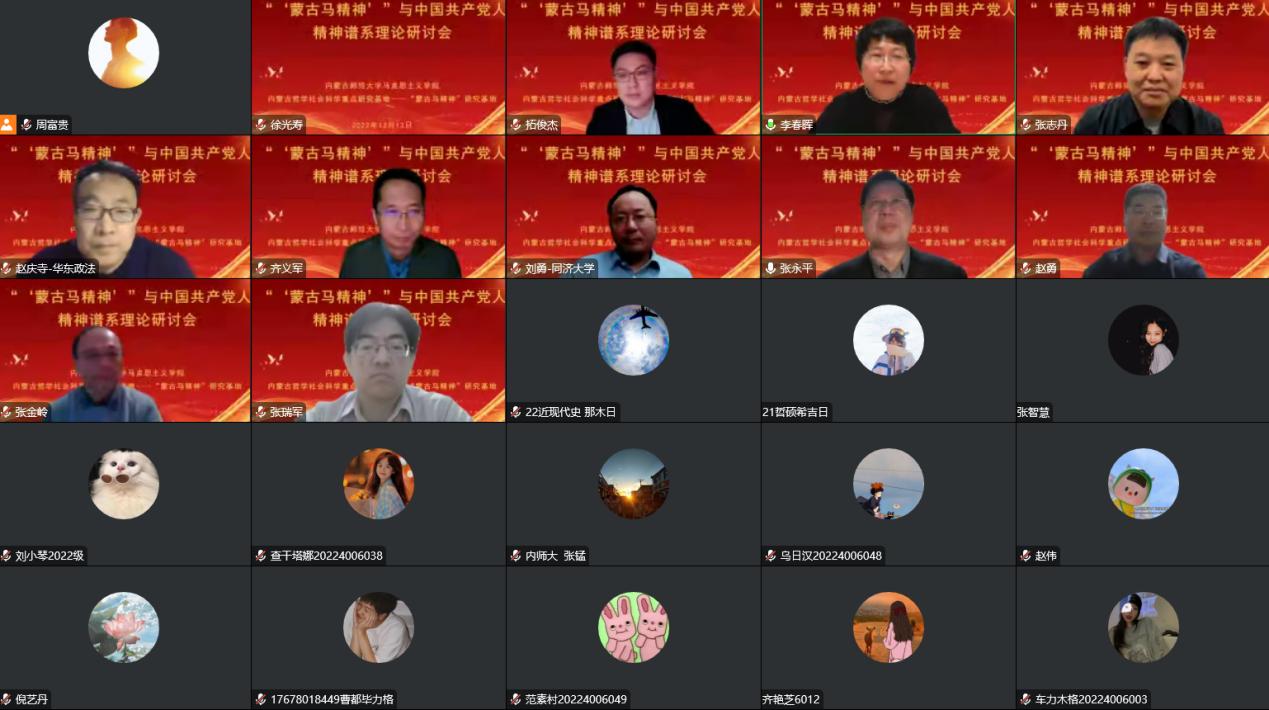 12月12日,“蒙古马精神”研究基地举办“‘蒙古马精神’与中国共产党人精神谱系”理论研讨会,本次研讨会由自治区党委宣传部理论处指导,由今年会jinnianhuicom和自治区哲学社会科学重点研究基地——“蒙古马精神”研究基地承办。来自区内外的十余位专家学者在线上做主题报告和交流发言。开幕式由今年会jinnianhuicom院长齐义军教授主持。