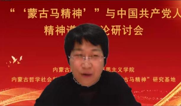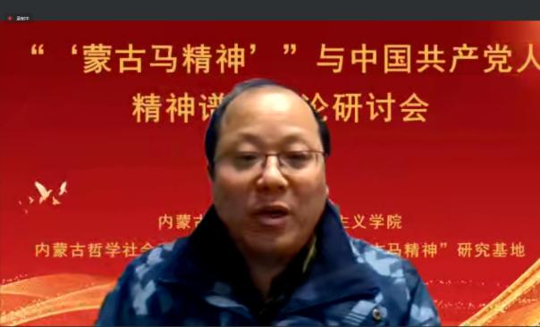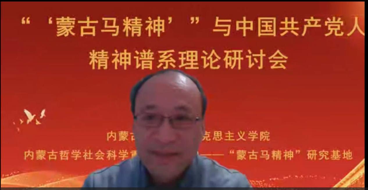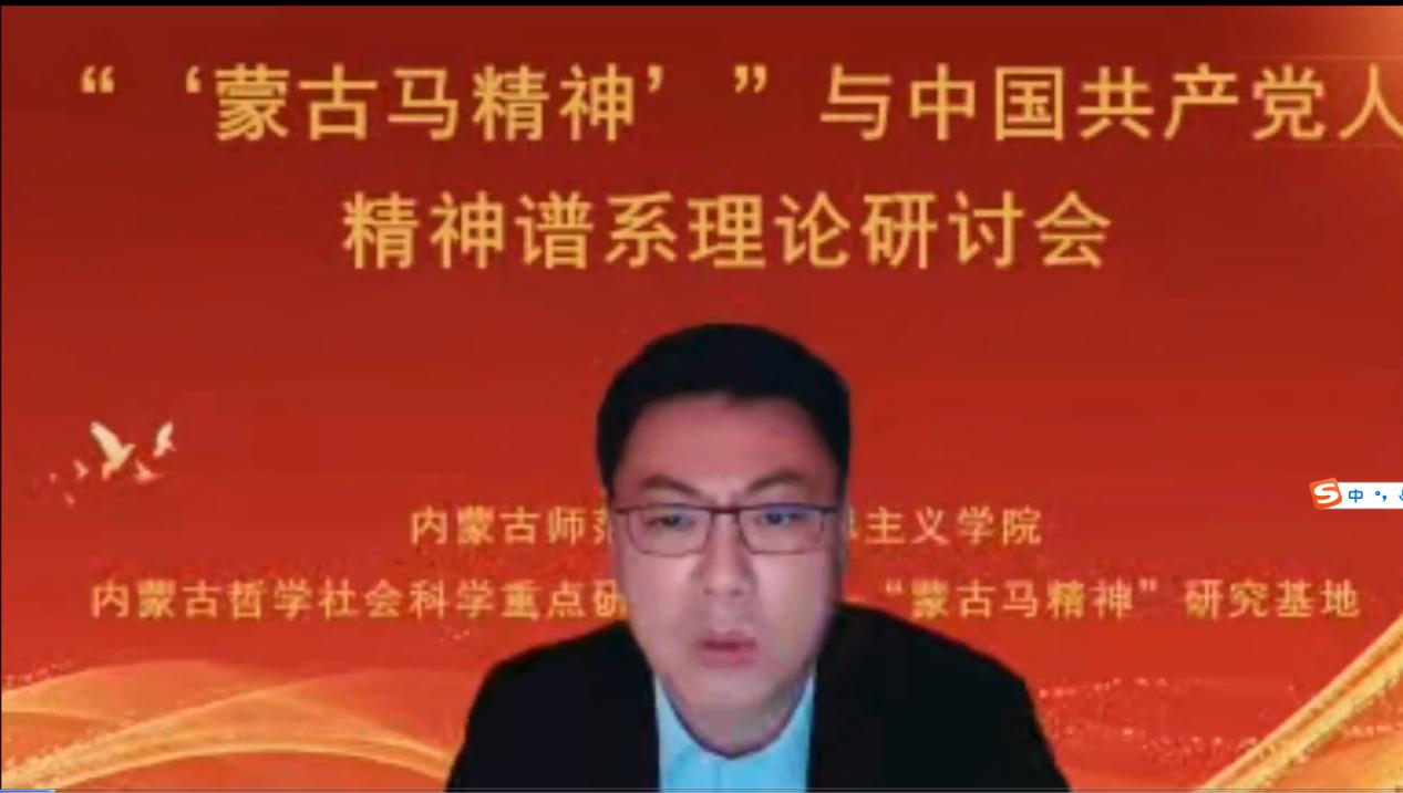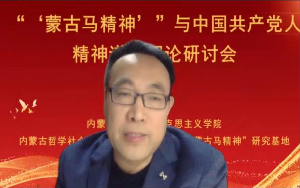 张志丹教授从意识形态的角度阐释了“蒙古马精神”与中国共产党人精神谱系的关系,指明了弘扬“蒙古马精神”坚持马克思主义理论指导的重要性;赵勇教授以“‘蒙古马精神’与百年大党革命精神”为题,从“怎么看”“怎么办”两个方面,阐明了二者的结构性、功能性、发展性关联,强调了深化拓展、学理研究和专题化教学的重要性;刘勇教授基于大历史观视角,拓展了“蒙古马精神”的研究视野,强调了应该将“蒙古马精神”放置中华民族千年文明史中、放置“四史”中、放置中国共产党人的精神谱系形成过程中、放置大中小学思政教育一体化格局中去理解认识;张瑞军副教授聚焦“蒙古马精神”的本质特质主动性,从蒙古马精神的思想建构以中国特色社会主义实践作为存在论基础、以实现人民的美好生活需要为价值关切、以把握历史规律坚持主动作为为主体要求三个方面进行了阐释。